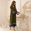 For the woman who finds herself by losing herself to her own music and own rhythms, an ode in lush green. This majestic lawn kurta set is inspired by deep forests, showcasing elegant florals in detailed threadwork combined with fringes in a contrasting shade of deep blue.