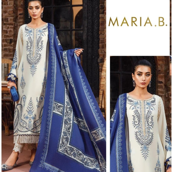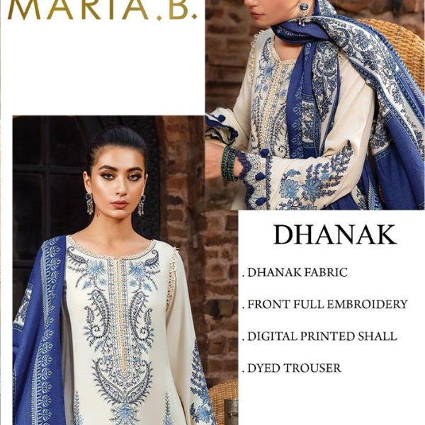 Maria.B D # 109- 01| 3PC Luxury Dhanak | printed wool Shawl