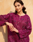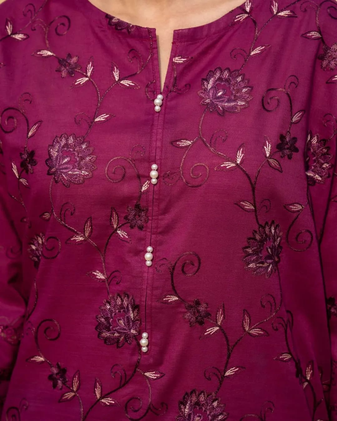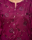 Step into sophistication with our Plum Farshi ensemble, where contemporary design meets artisan craftsmanship. Length is = 40 inches. This exquisite 2-piece set features: